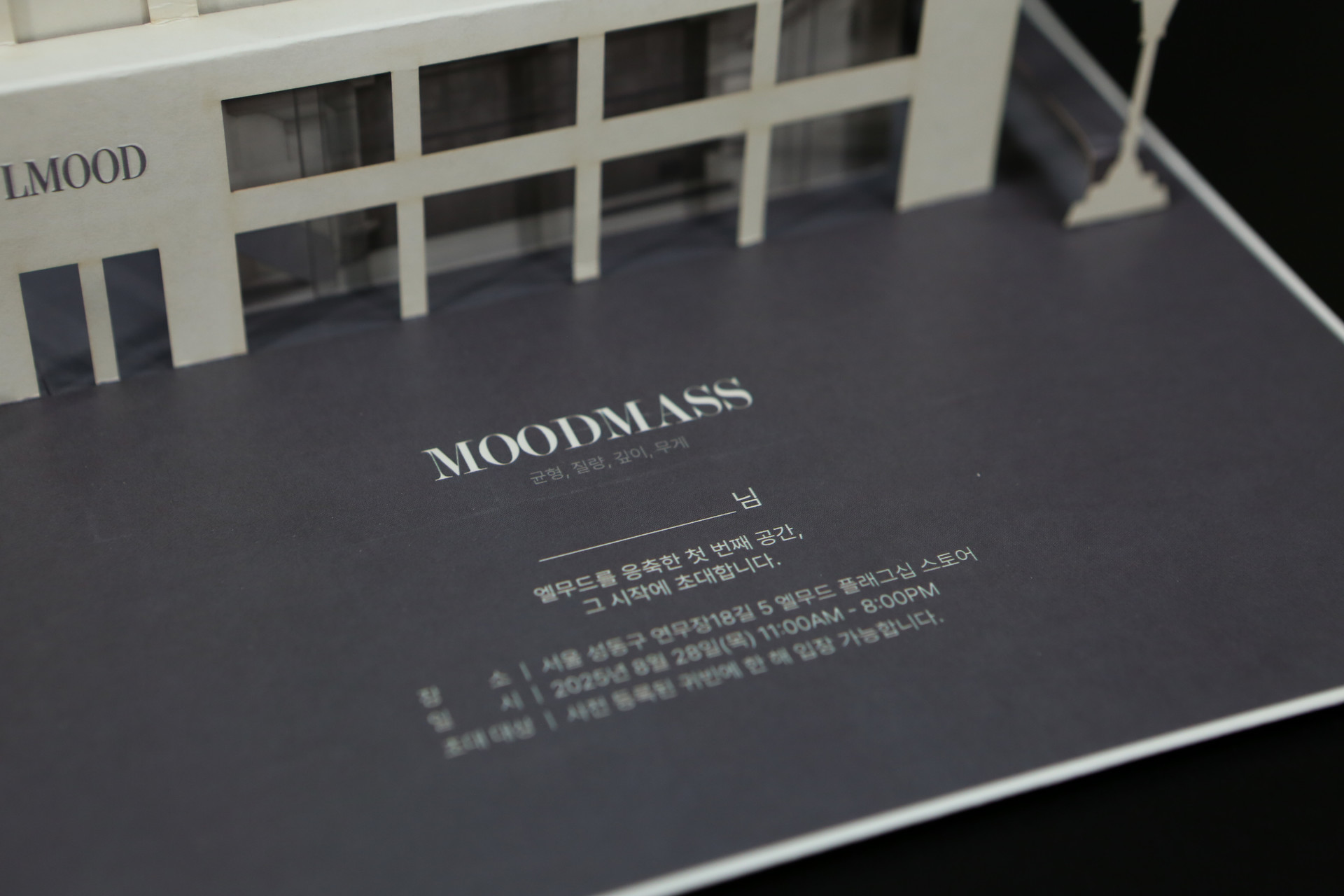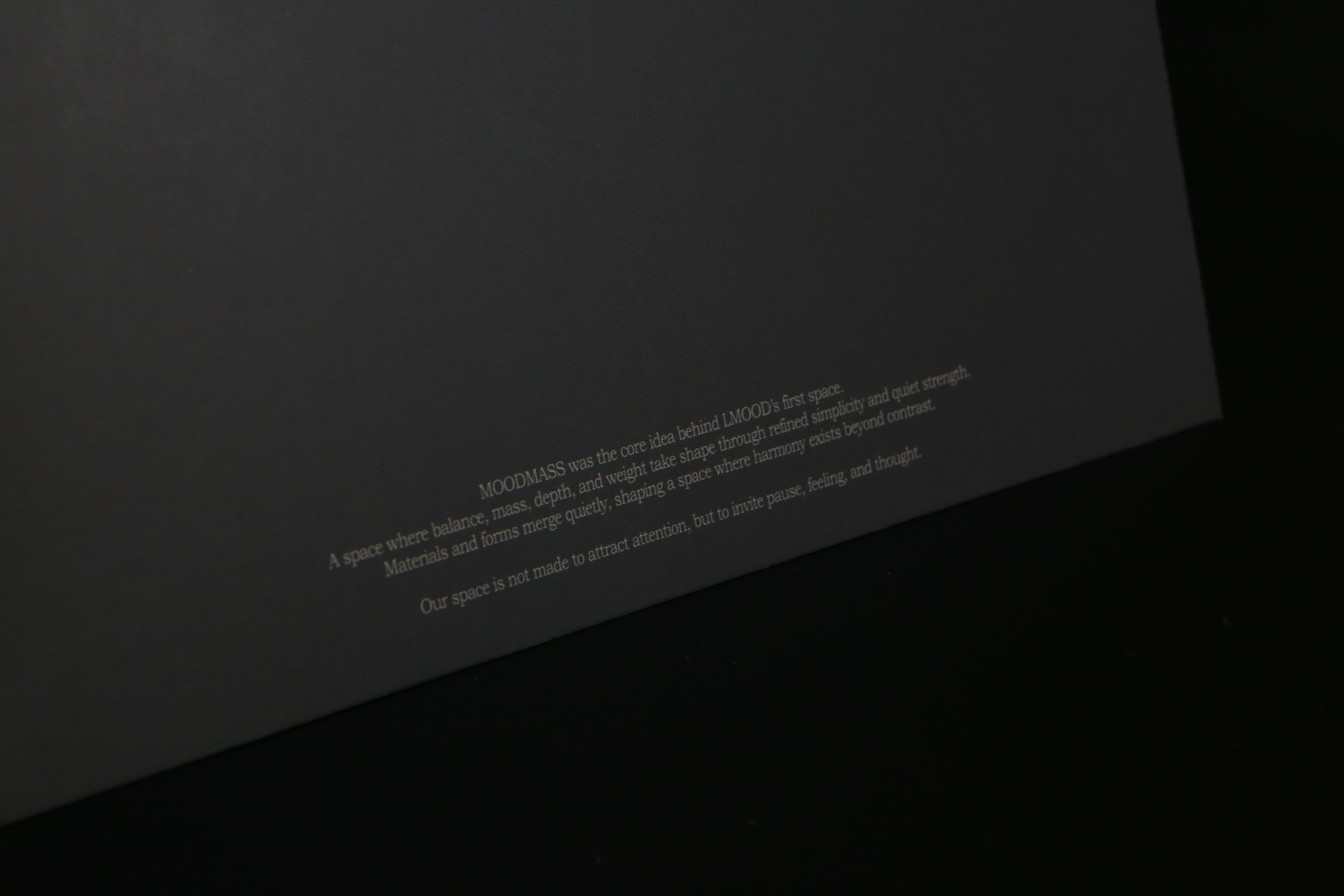 정제된 균형과 깊이, 무드의 무게를 중점으로 제작하였습니다.