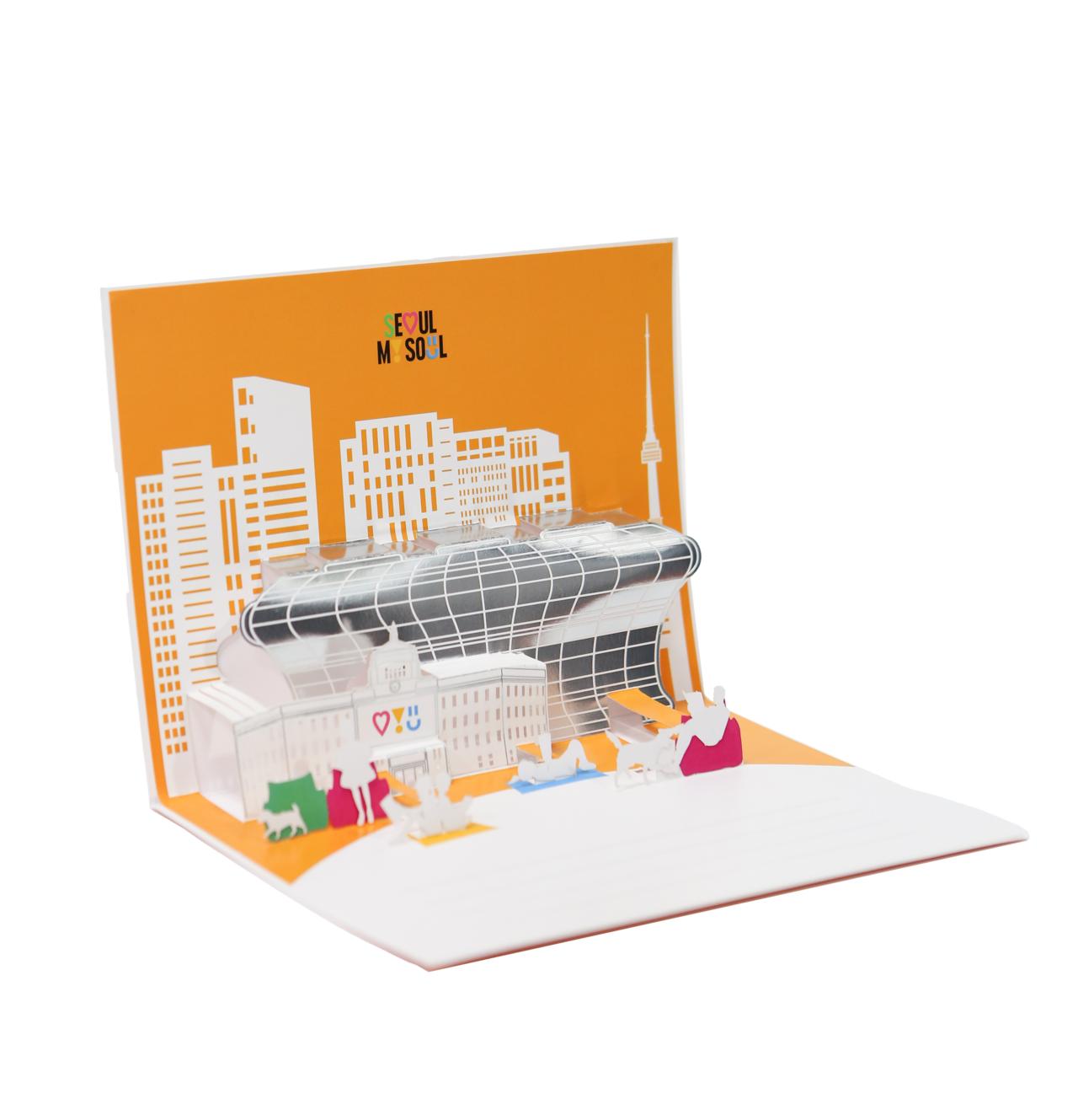 이음드림은 서울디자인재단과 협업하여 서울특별시 서울신청사 서울갤러리를 모티프로 한 팝업카드를 제작하였습니다.