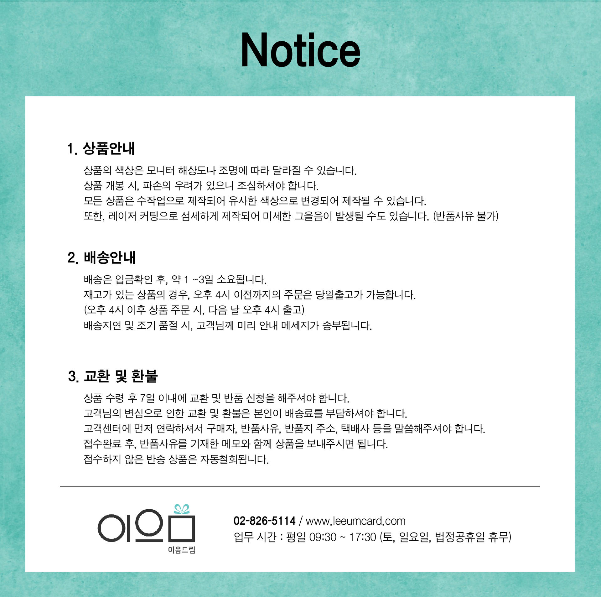 이음드림의 모든 입체카드는 수작업으로 제작되어 유사한 색상으로 변경되어 제작 될 수 있습니다.
