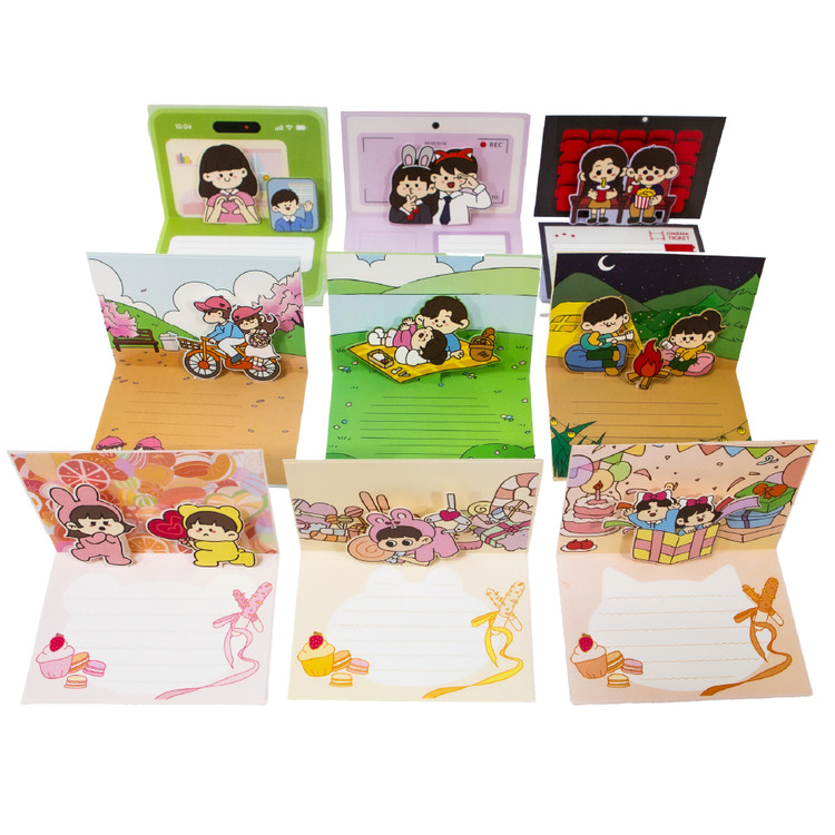 팝업카드 입체편지지 특이한편지지 기념일 감성 연애 선물 데이트 일상 편지 9종 묶음